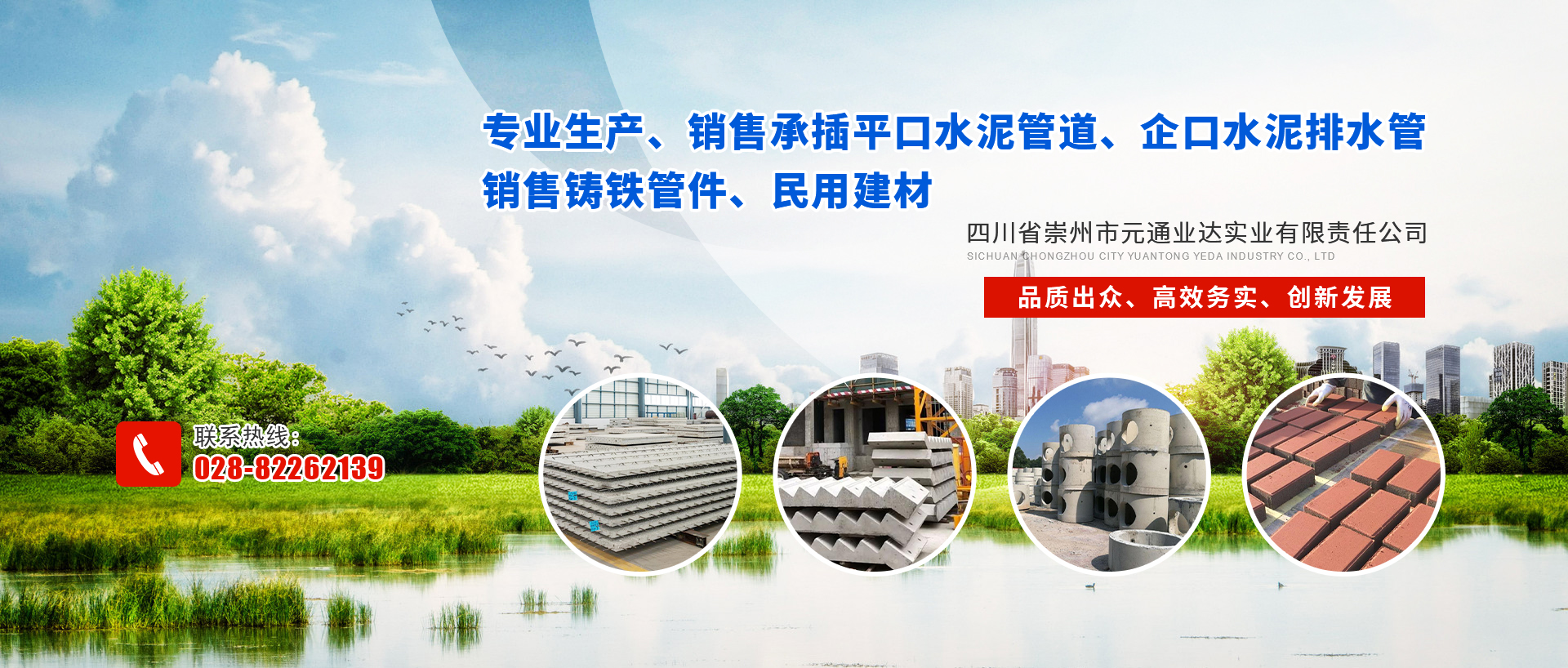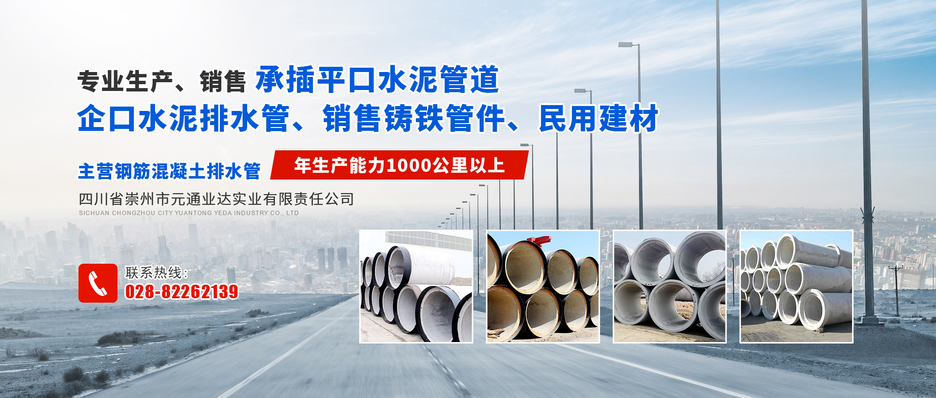 四川省崇州市元通業(yè)達實業(yè)有限責任公司是專業(yè)生產(chǎn)、銷售承插平口水泥管道、企口水泥排水管、銷售鑄鐵管件、民用建材的企業(yè)。自創(chuàng)辦以來,本著誠信經(jīng)營的原則,積極進取、勇于開拓,經(jīng)過多年的努力拼搏,隨企業(yè)不斷拓展壯大,企業(yè)于2002年8月26日重組注冊四川省崇州市元通業(yè)達實業(yè)有限責任公司,法人代表為王自立。 目前鋼筋混凝土排水管是公司的主導產(chǎn)品。管徑:Φ200——Φ3550mm,長度2000—2500mm。公司有多條生產(chǎn)線,年生產(chǎn)能力1000公里以上,產(chǎn)品還有與管道安...